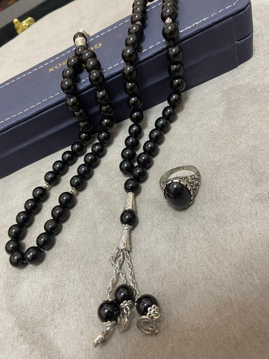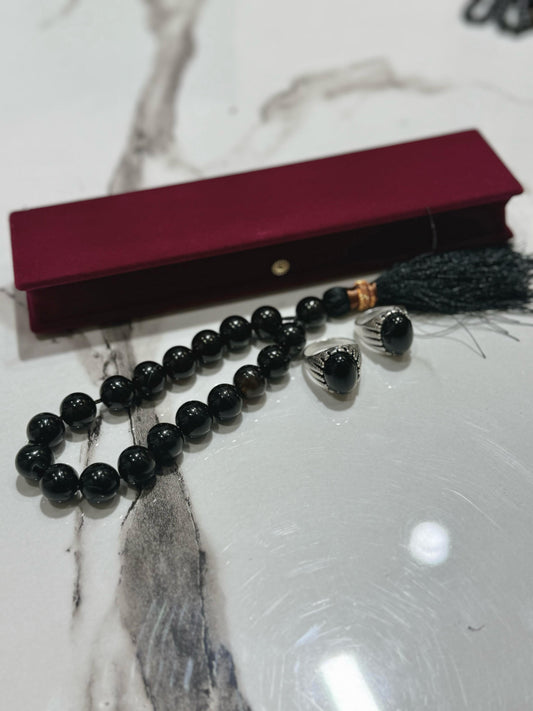 Black Aqeeq 8 mm Black Tasbih With Men's Ring