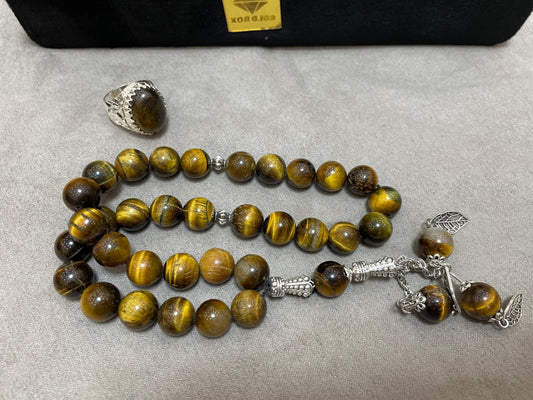 Tiger Eyes Aqeeq Tasbih With Out Attar